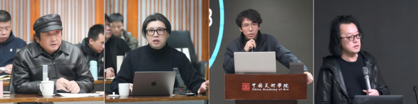中国美术学院艺术管理与教育学院院长孔令伟,中国美术学院跨媒体艺术学院副院长闵罕,中国美术学院视觉传播学院副院长刘益红,中国美术学院创新设计学院教师俞同舟先后发言