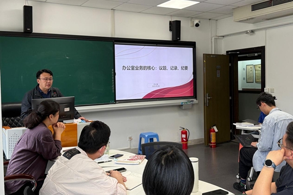 办公室主任韩亮围绕《办公室业务的核心:议题、记录、纪要》作专题培训,进一步提升二级学院党委会、党政联席会的规范性。他强调,议题、记录和纪要是学校决策体系和管理运行的“三驾马车”,直接影响学校的管理效能和政治生态。