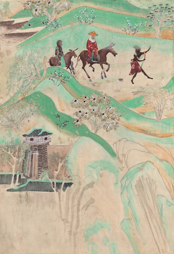 周昌谷 临摹《莫高窟第 217 窟 佛陀波利史迹画》(部分) 1954 年 87 x 62 cm 中国美术学院藏