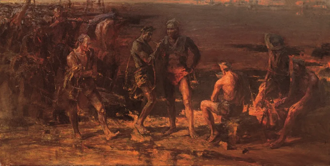 詹建俊《听涛——红霞》 180×300cm 布面油画 2013年