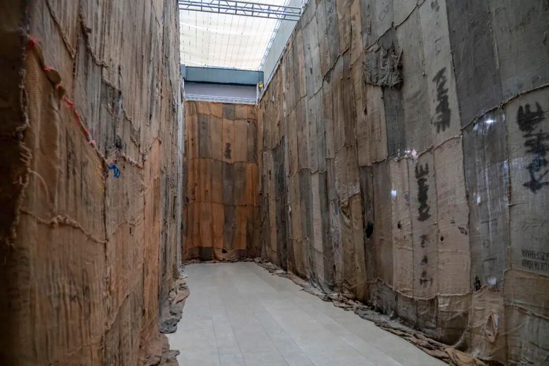 加纳艺术家易卜拉欣·马哈马(Ibrahim Mahama)于2013年创作的《无题》是一件规模宏大的织物装置作品,由十一块黄麻制成的旧煤炭袋构成,经由艺术家回收、整理并精心拼接完成。织物材料在马哈马的艺术实践与研究中占据核心地位,对他而言,这些布料不仅是创作媒介,更是时空与社会痕迹的档案文献,承载着被使用、搬运和磨损的历史。