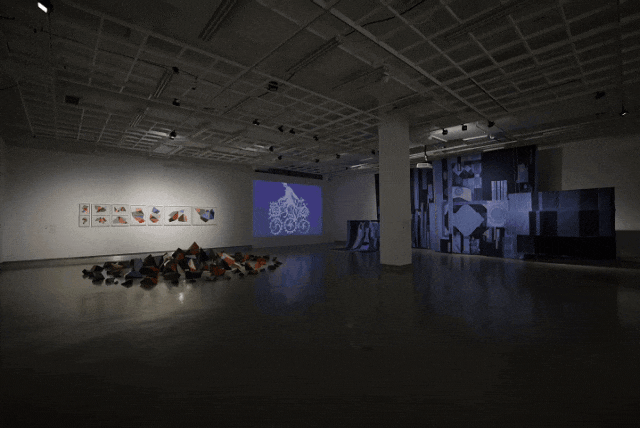 装置中的“档案图板”扮演着关键角色:它们并非割裂主题的物理屏障,而是认知网络的“暗物质”与“超链接节点”。通过这些图板,所有参展的艺术家被重新编组为1至5人构成的“恒星系”,每个“恒星系”都是一个自洽的“观念星座”,在“好邻居”非等级方法论的指引下,让不同文化背景的艺术表达形成“星丛式”对话。这种编排不仅实现了对既有艺术史中心化星座的解构性重组,更以具象化的方式,推动曾被西方叙事遮蔽的“全球南方”文化星体,从“沉默的暗星”转变为“自主发光的能量体”,让多元文明的视觉符号在纤维的柔软质感中,共同生成超越东西方二元对立的文化星图。