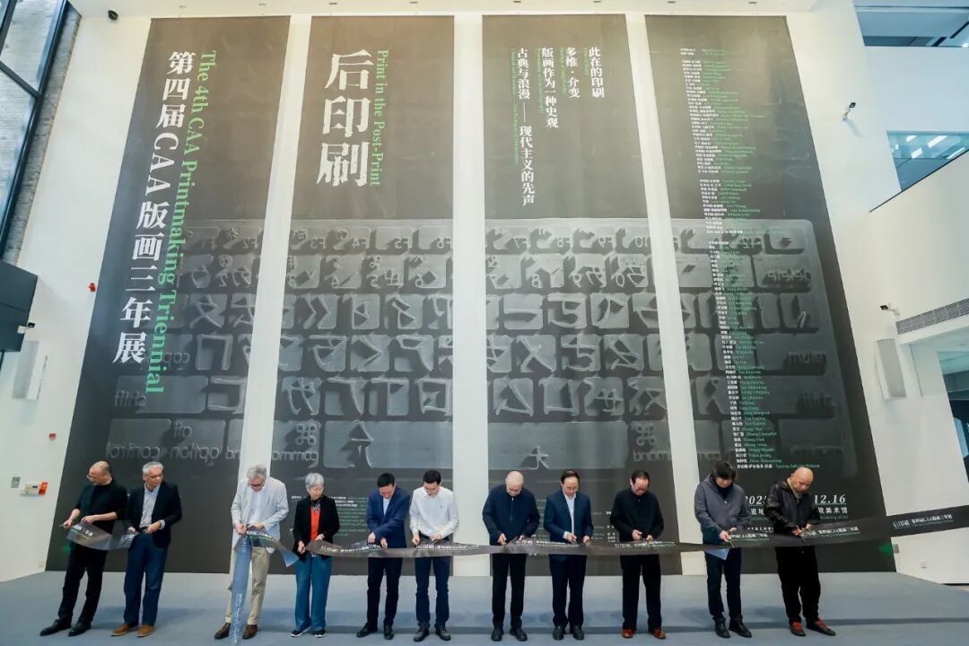 中国文联副主席、浙江省文联主席、中国美术学院学术委员会主任许江,浙江省文联党组书记、副主席、书记处常务书记杨守卫,中国美术学院党委书记金一斌,中国美术学院院长余旭红,中国美术学院原党委书记毛雪非,英国国家美术馆原馆长、浙江省西湖友谊奖获得者、中国美术学院特聘教授尼古拉斯·彭尼爵士(Sir Nicholas Penny),北京大学博雅特聘教授、中国美术学院特聘教授渠敬东,艺术家、中央美术学院客座教授方力钧,云南艺术学院原院长郭浩,天津美术学院副院长寇疆晖,本次展览策划、中国美术学院教授孔国桥出席开幕式并为“后印刷——第四届CAA版画三年展”剪彩。许江、余旭红、渠敬东、参展艺术家代表扎达克·本·大卫(Zadok Ben-David)先后在开幕式上致辞,孔国桥介绍展览情况。