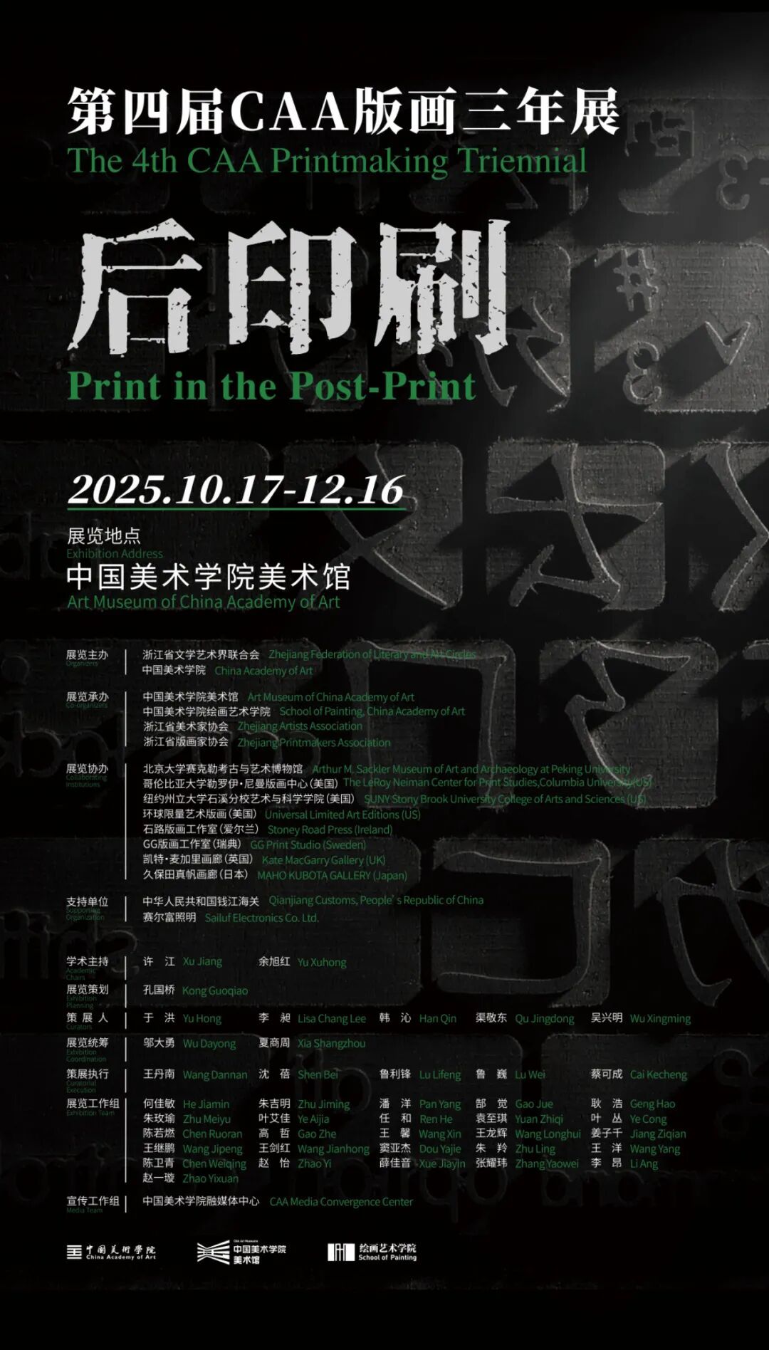 10月20日,由浙江省文学艺术界联合会、中国美术学院主办,中国美术学院美术馆、中国美术学院绘画艺术学院、浙江省美术家协会、浙江省版画家协会承办的“后印刷——第四届CAA版画三年展”在中国美术学院美术馆开幕。