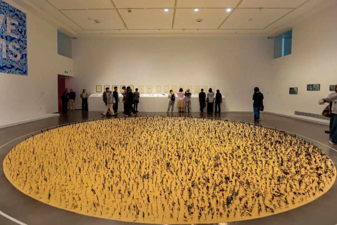 扎达克·本·大卫向学校领导、策展团队及志愿者表达了诚挚谢意。他着重分享了其装置作品《黑田》的创作理念。该作品以花朵为核心意象,但其本质是关于人性的隐喻,象征着人类的态度与行为。艺术家从全球收集了900种花卉,通过绘画转换,并采用照相蚀刻技术在铜版上创作,最终为每朵花赋予黑白与彩色两面。该作品此次被特别布置为圆形装置,引导观者从象征悲伤、战争与黑暗的黑色一面开始,逐步环绕,最终抵达充满希望与快乐的彩色一面。这一观看过程,艺术性地呈现了从绝望到希望的转变,寄托了艺术家对人性光明面的信念。他表示,本次展览使其在多年后重归版画领域,参展艺术家们丰富的媒介探索与高艺术水准令人惊喜。