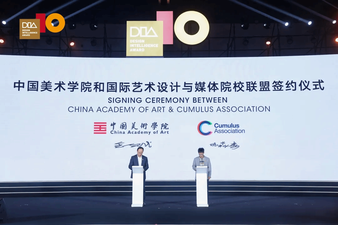 颁奖典礼上,国际艺术设计与媒体院校联盟(Cumulus Association)与中国美术学院正式签署战略合作意向书。双方本着平等、开放、共赢的原则,充分发挥各自优势,依托创新孵化奖,共同组织国际化赛事、学生创新营及学术研究等活动。通过“平台牵引—企业出题—高校应题”的协同创新模式,整合奖项、企业与高校三方资源,实现设计教育与产业创新的高质量深度融合,并进一步拓展全球创新合作的广度与深度。