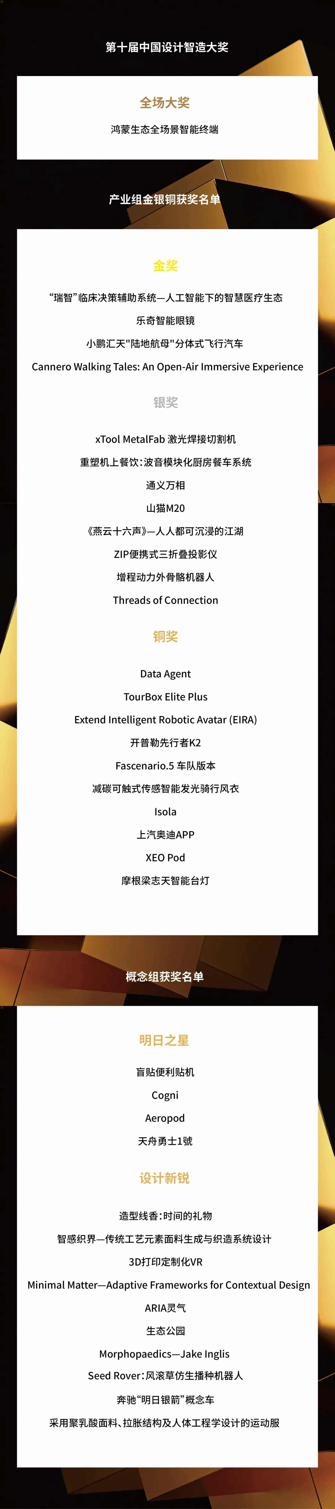 第十届中国设计智造大奖获奖名单
