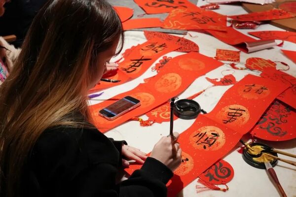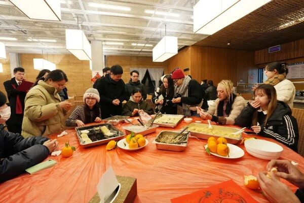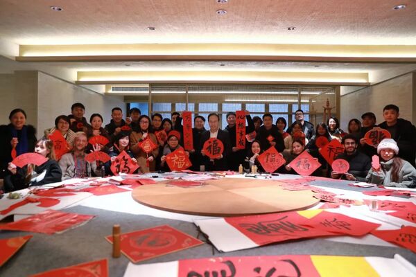 写“福”字,送对联。在象山校区水岸山居,校领导与留校的中国师生及来自世界各地的留学生一同挥毫。红纸徐徐展开,海内外师生一道,用中国传统的笔墨书写下的,既是对新年的祝福和祈愿,更是予文化的传承与弘扬。金一斌向留校同学表达了新年的问候,并希望同学们不忘初心继续努力,对标学校“双一流”大学的建设发展,新的一年在学业上持续精进,学术上有所成果。随后,在场师生还参与了包饺子、做麻糍等活动,现场其乐“龙龙”。