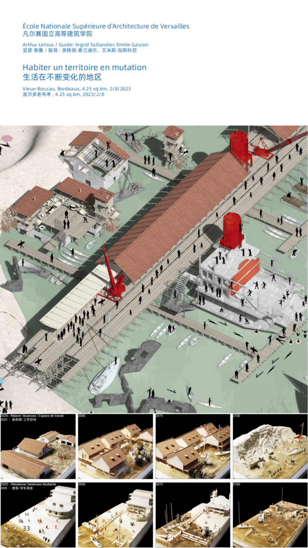 参展的法国青年学生作品来自凡尔赛国立高等建筑学院,巴黎建筑专业学院,巴黎-美丽城国立高等建筑学院,巴黎-马拉盖国立高等建筑学院,巴黎-瓦尔德塞纳国立高等建筑学院,东巴黎城市与国土建筑学院等有代表性的建筑学院中2020年至2023年间毕业的年轻建筑师的作品,以及法兰西建筑科学院和法兰西岛建筑之家评选的法兰西学院硕士学位奖作品。参展的中国青年学生作品来自中国美术学院建筑艺术学院和东南大学建筑学院。他们的作品能让观众看到中法两国各自不同背景的建筑学子的未来视野。从这个展览所展现的中法两国青年建筑师的作品中,我们可以直观地感受到这个不确定的世界的一种更加积极的未来。