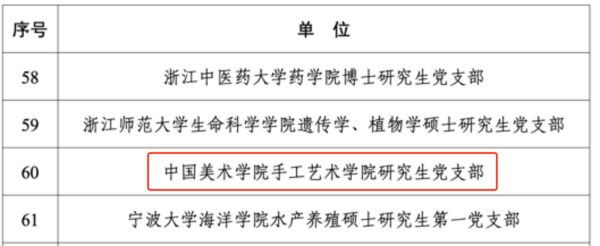 近日,教育部公布第四批全国党建“双创”工作培育创建单位名单和第三批全国高校研究生“双百”创建名单。视觉传播学院教师第一党支部入选第四批全国党建“双创”样板支部,手工艺术学院研究生党支部入选第三批全国高校“百个研究生样板支部”,雕塑与公共艺术学院2022级硕士研究生熊峻苓入选第三批全国高校“百名研究生党员标兵”。