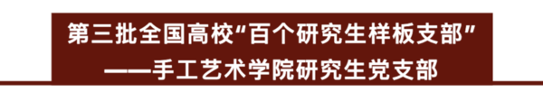 手工艺术学院研究生党支部成立于2018年,现有党员40名,系浙江省首批“研究生样板党支部”。支部隶属于“全国党建工作示范高校”中国美术学院,“浙江省党建工作标杆院系”手工艺术学院党委。从新时代“手艺人”到青春“守艺人”,支部党员始终坚持将专业特色与党建品牌、科研创作、社会服务深度融合,生动践行习近平总书记“推动中华优秀传统文化创造性转化、创新性发展”的指示精神。