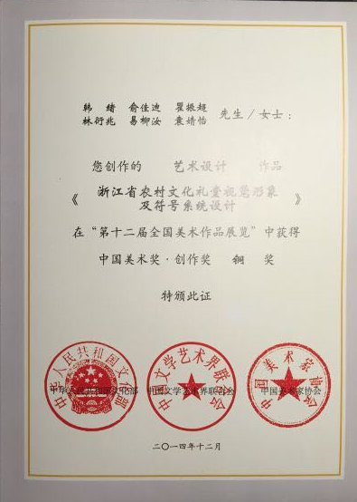 设计赋能乡村振兴。用设计点亮生活,助力乡村振兴,支部党员积极赴衢州、景宁、宁德等地,直接参与“千万工程”“微改造、精提升”等具体实践,总结形成了“乡村美化-艺展下乡-设计扶贫-红色传承”等行之有效的服务模式。支部书记俞佳迪作为浙江省农村文化礼堂视觉形象及符号设计主创之一,重塑中国传统礼仪的重要文化载体。支部党员毕学锋受聘为杭州市西湖区上城埭村“艺术村长”,带领村民聚焦“艺术振兴乡村”的小切口,做好“推进共同富裕”大文章。