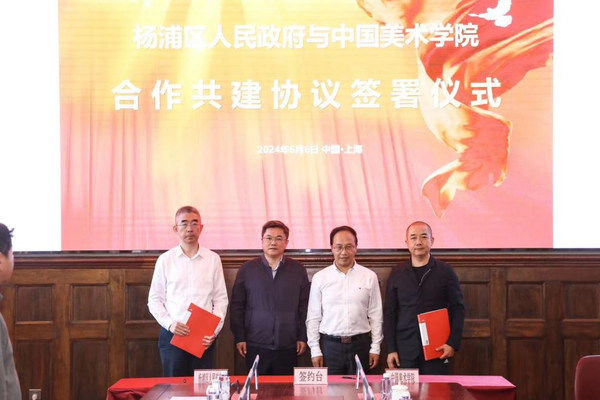 2024年6月6日下午,中国美术学院与上海市杨浦区政府合作共建协议签署仪式在杨浦滨江集团举行。中国美术学院党委书记金一斌、上海市杨浦区委书记薛侃、杨浦区委副书记周嵘、副区长王浩、中国美术学院副院长韩绪等出席。 在金一斌、薛侃的见证下,王浩、韩绪代表区校双方签署合作共建协议。
