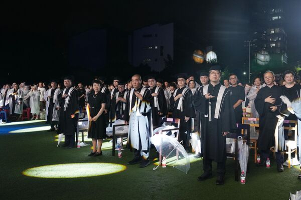 毕业典礼在庄严的国歌声中拉开帷幕。