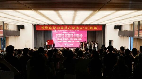 波澜壮阔绘就百年征程,历久弥坚不忘百年初心。为全面贯彻落实习近平新时代中国特色社会主义思想,弘扬伟大建党精神,7月1日上午,中国美术学院庆祝建党103周年主题党建活动在象山校区举行。党委书记金一斌,党委副书记、院长高世名出席,党委副书记孙旭东主持,党委委员、纪委书记陈于杰,党委委员、组织统战部部长徐国强出席活动。各二级党组织书记、专职副书记、组织员,党务部门负责人,“光荣在党50周年”老党员,全体预备党员、象山校区党支部书记、正式党员代表、一年级入党积极分子代表约900人参加。