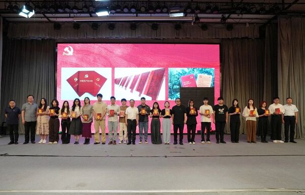 活动现场,校党委领导班子成员向预备党员代表赠送《中国共产党党章》《画说建党——红船启航》书籍及政治生日贺卡。各二级党组织书记、党务部门负责人,为新党员代表佩戴党徽。党委委员、组织统战部部长徐国强带领预备党员入党宣誓、正式党员重温誓词。
