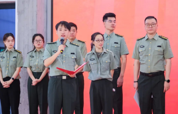 动员大会上,军训团参谋长唐榕、四营教导员韩阔宣读《军训纪律》。建筑艺术学院钱贝尔、工业设计学院王昱心两位同学分别代表参训学生发言,她们表示军训是学习人民解放军优秀传统与作风的绝佳机会,要充分利用军训契机,练就身体素质,学习军事知识,磨炼坚毅品格,在训练场上挥洒激情、释放青春、勇往直前、超越自我。