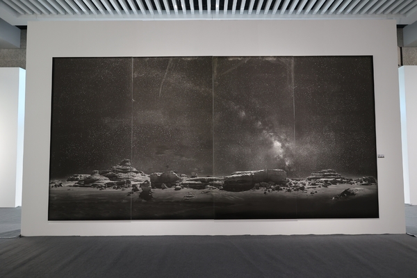 艺术家高世强的影像作品《山水:如何度过夜晚》以唐诗中的边塞诗作为立意切入点,在汉代烽燧与熔盐塔式光热电站的张力间,打开唐诗的想象限阈;艺术家邵文欢摄影作品《一万年》通过超长时间曝光呈现雅丹戈与壁璀璨星空的辉映,尽显苍凉浩瀚之气;刘钢强摄影作品《山巅之下是他山》在二维的“太虚空白”中“造山”,岩石、沟壑与山谷在时间中显影,在光影里定形,以摄影绘山水,以心景思苍山;叶露盈以青绿之色入敦煌之梦,用插画的语言对话经典传统的艺术素材,将心中的敦煌之景进行转化,以鲜艳的色彩和灵动的线条将我们一同带入敦煌之梦。
