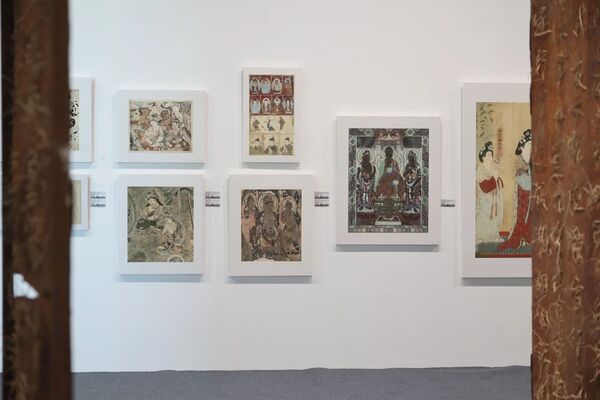 本次展览开启了“唐诗之路”兼容并济、豪迈家国情怀的新篇章,赓续东方诗性文脉的艺术特色,围绕边塞诗中常常出现的“战士”“诗人”“僧侣”“胡客”四个人物角色作板块区分,沿边塞之“远”对话边塞,勾连起“关山之远——天地之阔——人心之广”层层递进的精神线索。同时,四个角色也是四种敦煌风格的缩影,以此为基调线索,在靡靡诗音中寻觅“战士”仰天悲歌的刚健豪迈、“诗人”提笔万里下的苍莽壮阔、“僧侣”叩问心间的悠远亘古与“胡商”在边塞往来间体会到的人生旷达。