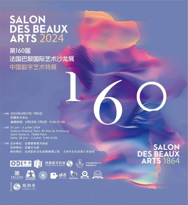 在中法建交60周年之际,“160届巴黎国际艺术沙龙展·中国数字艺术特展”于6月28日在法国巴黎正式开幕。该展览由法国国家美术协会主办,法国文化部、中国文化和旅游部、中国对外文化交流中心等单位支持举办。