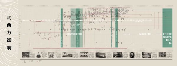 文献展包括研究图谱、研究专项、源流谱系三大区域。其中研究图谱包含出版设计文化研究脉络图及一百本精选文本展示;研究专项包含六大重要研究板块;源流谱系则涵盖本土传承、西方影响、洋务运动、师范图画、教会慈善五大研究脉络图谱。