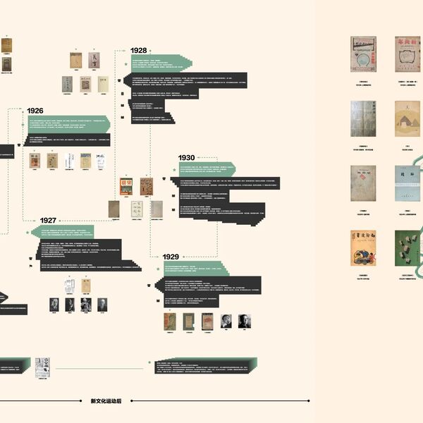 本次文献展以“鉴往知新”为主题,从多个维度向观众展示新文化运动背景下,中国出版设计的现代性转变的面貌。文献展内容分为三个维度:以西方影响为驱动的近代印刷技术的引进以及先进出版业的萌发;新文化运动的时代背景,从城市文化的视角观察新出版业和出版设计在这个时期的发展状况,以及代表性的设计参与者和设计案例;基于中国近代设计源流上海学的研究,对新文化运动时期的中国出版设计文化给予思考,以及相关研究成果的呈现。