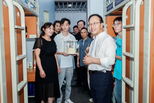 9月9日,中国美术学院党委书记金一斌,校党政领导孙旭东、曹晓阳、陈于杰、夏文莉、徐国强在相关教学单位及职能部门负责人的陪同下,走访迎新接待站、学生宿舍、食堂等,迎接新生,慰问现场的工作人员与志愿者。校领导还为当天过生日的新生们送上定制蛋糕和祝福,给予他们入校第一天惊喜的“生日礼物”。