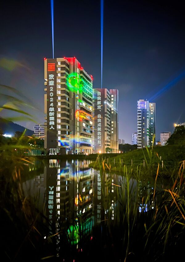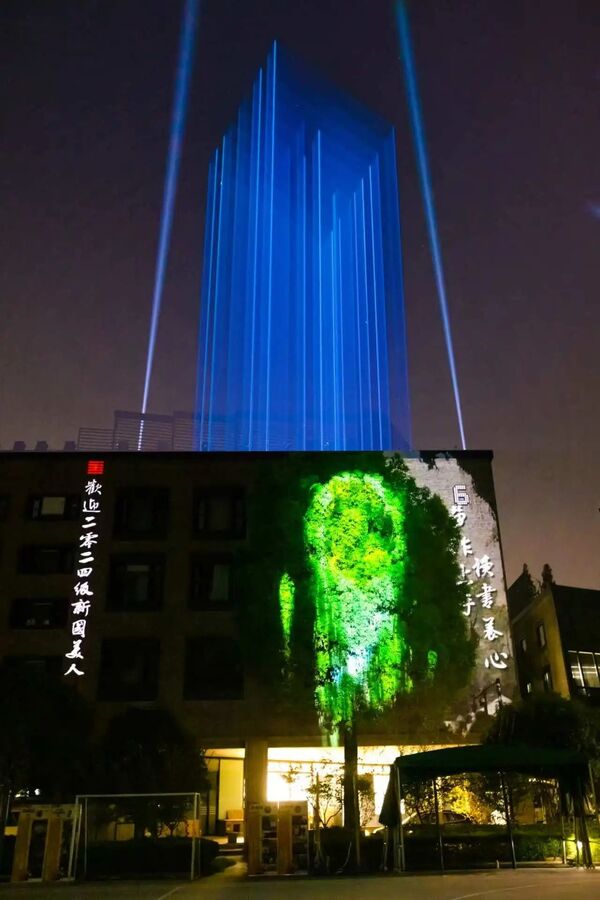 晚上,“迎新”灯光秀,带给南山、象山、良渚校区精彩的声光电体验。