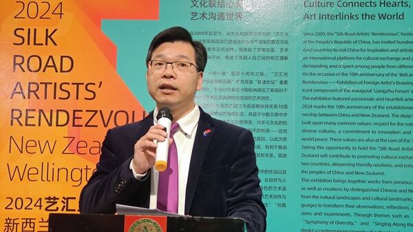 叶素公参表示,自2009年起,由中华人民共和国文化和旅游部主办的“艺汇丝路”访华采风活动已邀请全球近百个国家的数百名优秀艺术家来华采风创作。他强调,今年是习近平总书记访问新西兰十周年,也是深化中新两国关系的重要时刻。此次展览展示了来自近100个国家艺术家的作品,搭建了艺术交流的国际平台,促进了中西文化交流与互鉴,也将促进中新人民之间的理解与友谊,为双边关系的健康稳定发展注入新动力。