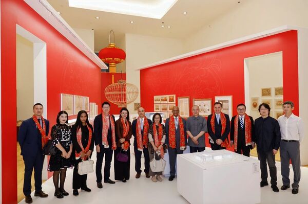 由乌拉圭、阿根廷、牙买加、多米尼克、格林纳达、苏里南等国驻华大使及工作人员组成的拉美加勒比地区驻华大使代表团一行20余人参观展览