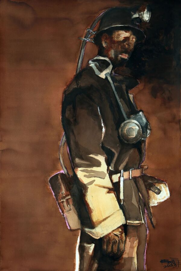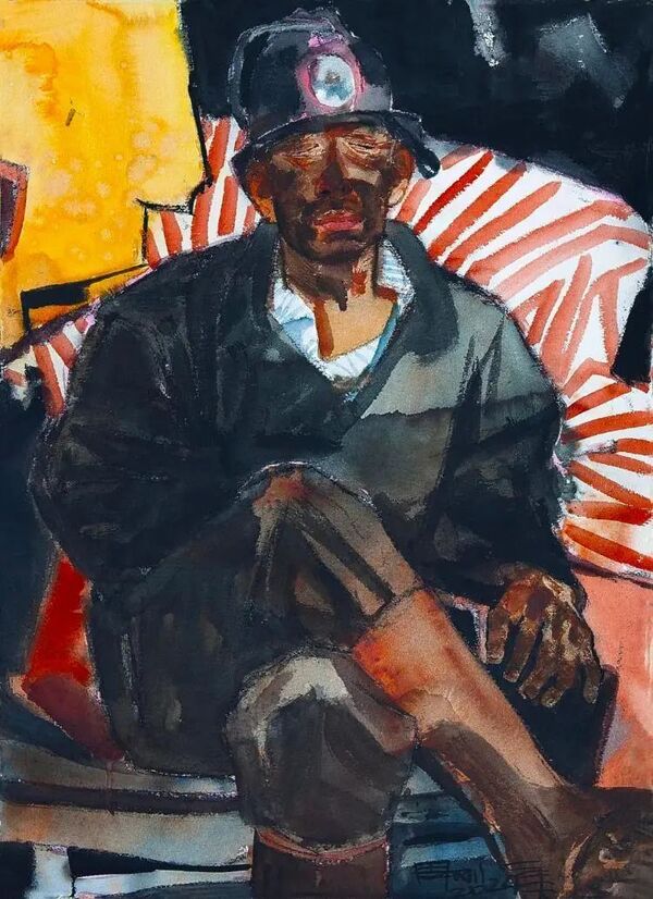 《就要退休的矿工冯利平》 纸本水彩 105×75cm 2024年