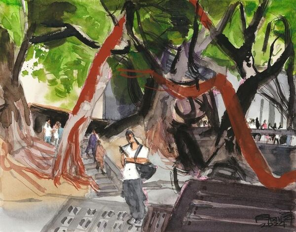 《澳门大三巴边上的小公园》 纸本水彩 32x41cm 2024年