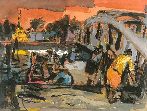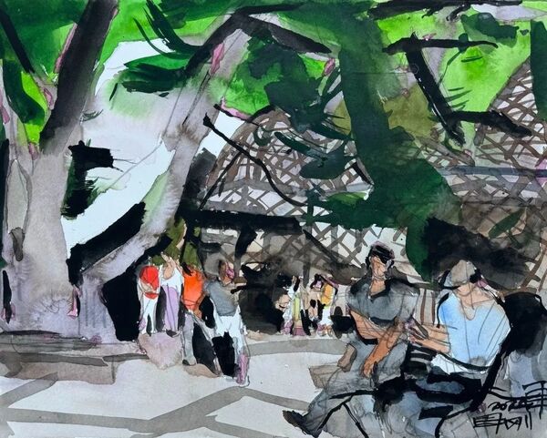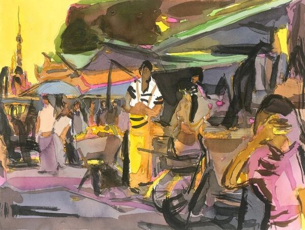 《缅甸鱼市》 纸本水彩 31x41cm 2016年