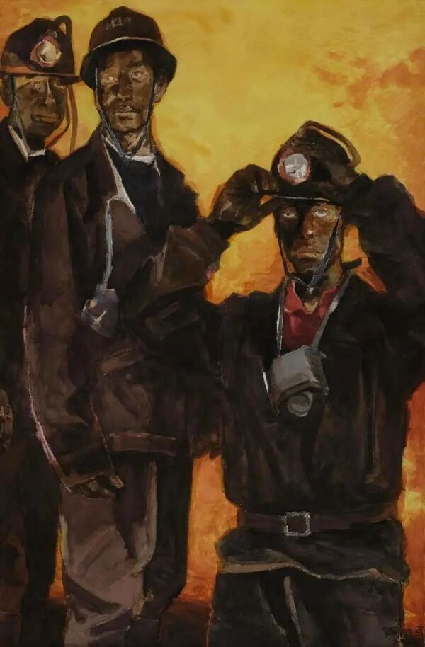 矿工,是周刚笔下的重要表现主题。多年来,他始终坚守在水彩艺术创作的第一线。他在文章中这样写道:“主张真人、真景、真性,反对艺术远离生活,主张从新的事象,把艺术创作的目标紧扣在最具有民族生性的群体中,在融合中感悟“真”的情怀,创作出具有深沉、坚毅、朴实、柔韧的具有本土特性的艺术作品。”周刚教授时刻践行着他的艺术主张,他19年来,一直深入煤矿一线,用自己的画笔将矿工的精气神刻画下来,他们的脸虽然是黑的,但是眼睛和头上的探照灯一样,炯炯有神。