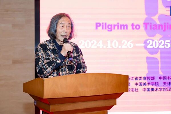 10月26日,由天津市委宣传部、浙江省委宣传部、中国书法家协会为指导单位,由天津市文化和旅游局、中国美术学院、天津美术学院主办,天津市美术馆、兰亭书法社、中国美术学院现代书法研究中心承办的“津门问道——王冬龄书法艺术展”在天津美术馆开幕。