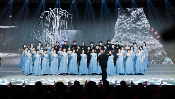 演出分为序曲、“开天辟地”“国美风神”“七五风华”四个篇章,在全场齐唱的国歌声中,歌会正式开始。党委班子、机关教工、各教学单位和离退休教职工共23支合唱队伍先后登场。高唱着《长江之歌》,《我们走在大路上》,《追寻》那份纯真与大爱。我们心怀感恩,用最真挚的歌声,“《唱支山歌给党听》,我把党来比母亲”,《是妈妈是女儿》倾诉着对党和祖国的深情,传递着对母亲的眷恋。透过《灯火里的中国》,迈着坚实的脚步,在新征程上《追光》。《祖国不会忘记》那些用青春写就“清澈的爱,只为中国”的战士们,那些用学识与胆魄铸起“国防之墙”的科学家,那些坚守岗位、心怀赤诚的寂寂无名者......《天耀中华》,在这片广袤的大地上,一声声呐喊,一片片赤忱,汇聚成一句《我爱你中国》。