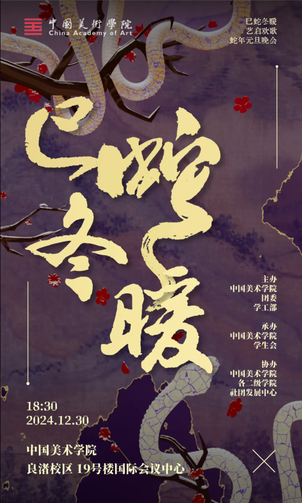 青春正当燃,万象始更新。2024年12月30日,“巳蛇冬暖,艺启欢歌”中国美术学院2025年元旦晚会在良渚校区举行。本次活动由中国美术学院团委、学工部主办,学生会承办,各院系及社团发展中心协办。