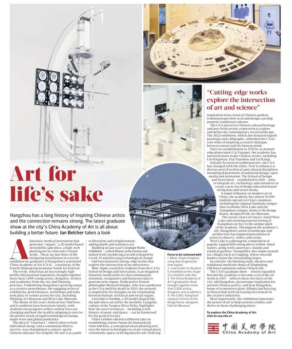 《泰晤士报》整版刊文关注中国美院毕业展:东方千年灵感之地高等学府持续激发艺术“生活力”,新华社对此进行国内二次传播,阅读量近百万。