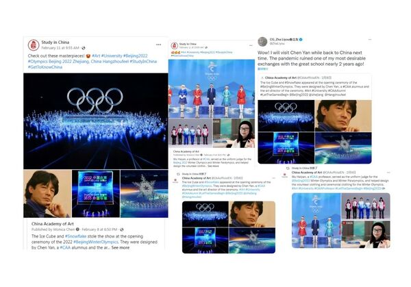 美院推特页面发布的“揭秘冬奥会‘冰立方’,国美人这样惊艳世界!”贴文,获中国驻加尔各答总领事查立友的转发和评论。发布的“国美人在冬奥”系列贴文,获留学中国脸谱和推特账号转发。