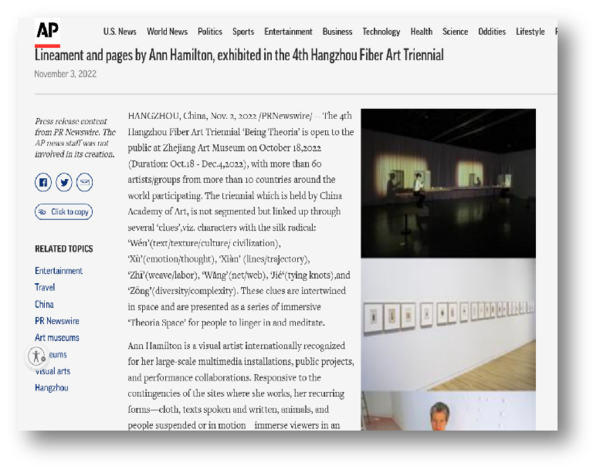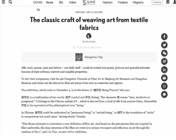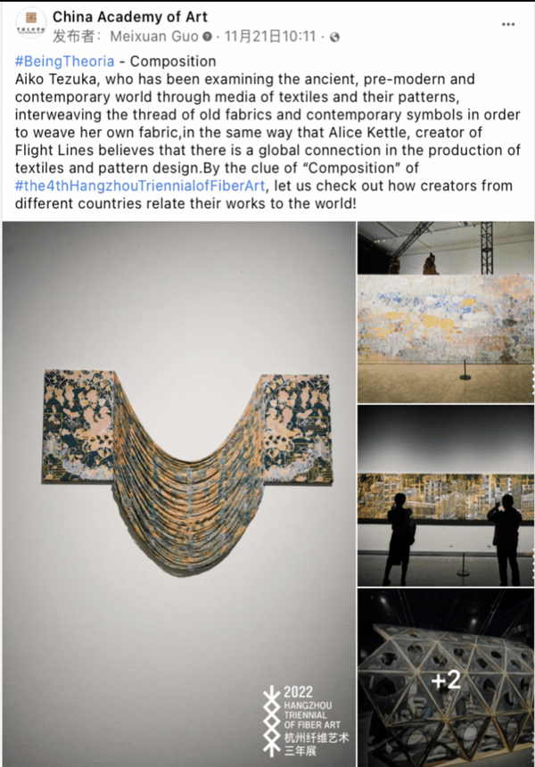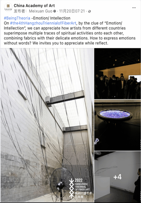 以中国美术学院全年重点学术活动为切入点,探索海外大众媒体、专业媒体、海外社交媒体、英文官网、国美学术通讯微信公众号等国内外多渠道报道模式,跟进报道“唐诗之路大展”、“2022年青艺周”、“杭州纤维艺术三年展”、“美丽中国研究院年度行动志”、师生国际获奖等重点新闻,融合展览主体意蕴和艺术家个体群像,形成国内国际双循环的全球传播模式。