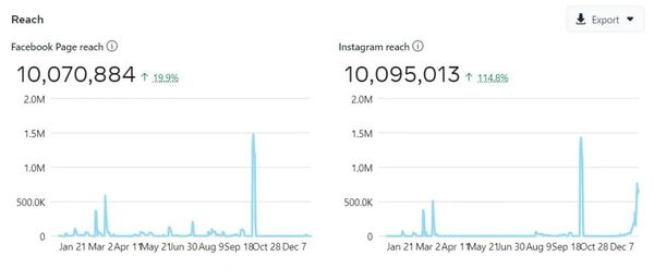 Meta平台( Facebook & Instagram )产出自然传播量10万+推文6篇,其中“光影万象·千岛湖国际光影艺术双年展”阅读量36万+,“学生临摹帕加马浮雕作品展”帖文、国际传播系列主题片《艺苑寻踪》阅读量20万+。Twitter平台新增含政企、意见领袖、国际电影节等多种类大V关注。