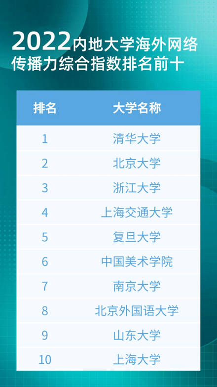 1月6日,北京师范大学新媒体传播研究中心、中国日报网、光明网等单位联合发布《2022中国大学海外网络传播力建设报告》,中国美术学院位列内地高校第六,连续五年跻身中国内地高校海外传播力前十,Instagram单平台从2021年的第20名跃升至2022年的第3名(含港澳台高校),彰显一流海外传播力!