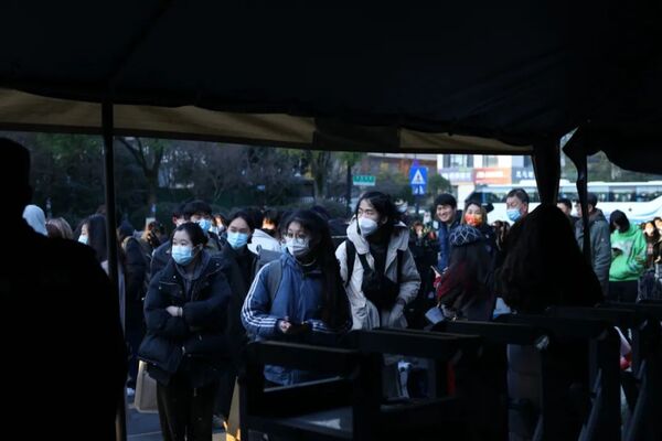 考场外,众多家长站在校门口翘首以盼。从辽宁赶来,陪孩子赴考的考生家长说:“我们全家都非常重视这次考试,因为路途遥远,所以提前一周收拾好行李早早赶赴杭州。孩子报考了图像与媒体艺术类,中国美院一流学府吸引了许多优秀的考生,竞争激烈,希望他能正常发挥,圆梦国美。”