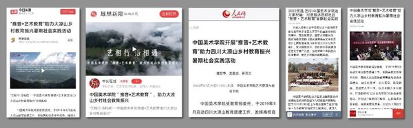 2022年6月底至8月初,中国美术学院“赴四川省凉山彝族自治州推普助力乡村振兴志愿服务队”实践团队积极落实教育部、国家乡村振兴局、国家语委“推普助力乡村振兴计划”,通过艺术赋能,将美育、语言文字、文化知识融为一体使学生在良好的艺术教育气氛中潜移默化的习得国家通用语言文字,以线上、线下“推普+艺术教育”有效推进文化教育发展。实践成果由人民网、凤凰新闻、今日头条等先后报道。
