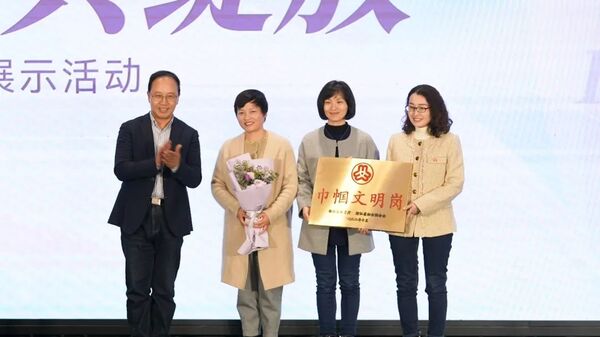 副院长、校妇联主席傅巧玲为“校级巾帼文明岗”雕塑与公共艺术学院纤维艺术系颁奖