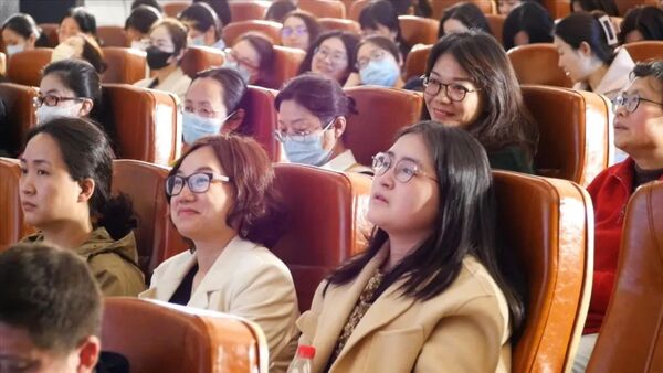 在“她力量 共绽放”环节,中国画与书法艺术学院副教授、硕士生导师吴冠华,电影学院副教授周家鹂,设计艺术学系副教授陈晶,设计艺术学院副院长、教授、博士生导师成朝晖,中国合唱协会理事、浙江省合唱协会常务理事、来自学工部的张艳老师为我们分享了不可或缺的国美“她力量”。她们分别从不同领域以“她力量”的女性视角分享了自己的感悟。女性是家庭中的“主心骨”,工作上的“半边天”,广大女同胞要以“知足而上进,温柔且坚定”的精神面貌展现更大作为,作出更大贡献。