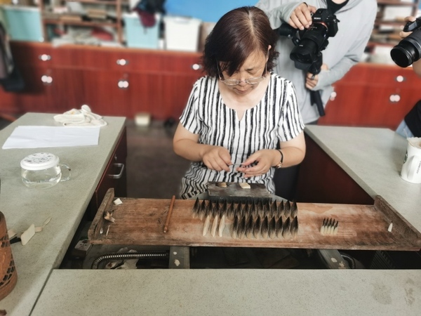 团队从湖笔诞生的历史开始,逐一了解湖笔的发展及制作工艺的迭代。大家从艺术家及使用者的视角与湖笔制作家与非遗传承人展开交流。团队师生提出要打通制作者与使用者的信息壁垒,对接艺术家创作需求,拓宽工艺思路,从材料开始进行始于足下的、切实的、建设性的发展。