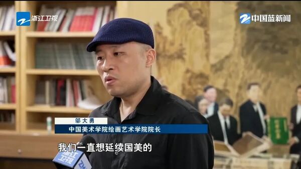 中国美术学院绘画艺术学院院长邬大勇:中国教育的根本任务就是立德树人。我们一直想延续国美的“为人生而艺术”的思路,培养出新的学生,在教学中完成一个以研创反哺教学的良性循环。