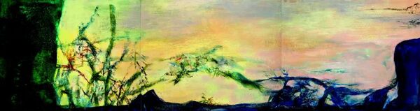 许江回想起自己作为学员参加1985年赵无极绘画讲习班的场景,忆起他的笑容,心中总感亲切。他最难忘的是赵无极反反复复强调要向民族的优秀传统学,向世界第一流的大师学,应站在世界艺术之上融合东西艺术。赵无极先生将他对油画油色的理解化入东方的浑茫气象,并以织维般的线条来抒发中国山水的撇捺挥洒。赵先生不是画凝厚的山水物象,而是以空的、虚的方式兴发空濛的山水之光。东方的书艺与山水,被油画的油性挥洒,被时代的勃然之气彻底激活,炼化为势与气的写意铺陈,从而揭开了一派华彩淋漓的霞光世界。今日有机会再次面对他的绘画,既有追怀,更有一份深切的领悟。突破所谓“抽象”的标签,我们看到的是一种真正的山水精神的高华。这是一种站在世界艺术之上的创造性的融汇,这是一份卓立于东西格局之上的浩然大道。
