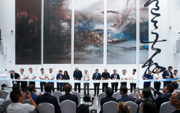 法国驻华大使白玉堂(Bertrand Lortholary),展览总顾问多米尼克•德•维尔潘(Dominique de Villepin),中国美术学院老教授全山石,赵无极基金会主席、赵无极夫人弗朗索瓦兹•玛尔凯-赵(Françoise Marquet-Zao),文化和旅游部艺术司一级巡视员周汉萍,中国文联副主席、浙江省文联主席许江,中国美术家协会分党组书记、驻会副主席、秘书长马锋辉,浙江省委宣传部常务副部长来颖杰,浙江省委宣传部副部长范庆瑜,浙江省文联党组书记、副主席、书记处常务书记杨守卫,杭州市委常委、市政府党组成员方毅,浙江省文化和旅游厅党组成员、省文物局局长杨建武,浙江省文化和旅游厅一级巡视员许澎,法国驻上海总领事王度(Joan Valadou),法国驻华使馆文化、教育与科学事务公使衔参赞兼法国文化中心主任裴国良(Nicolas Pillerel),中国美术学院党委书记金一斌,中国美术学院院长高世名,赵无极基金会总监扬·亨德根(Yann Hendgen)共同为展览启幕。高世名、白玉堂、周汉萍、来颖杰、方毅、许江、多米尼克•德•维尔潘在开幕式上先后讲话。开幕式由浙江省文联书记处书记、中国美术学院美术馆馆长、本次展览策展人余旭鸿主持。
